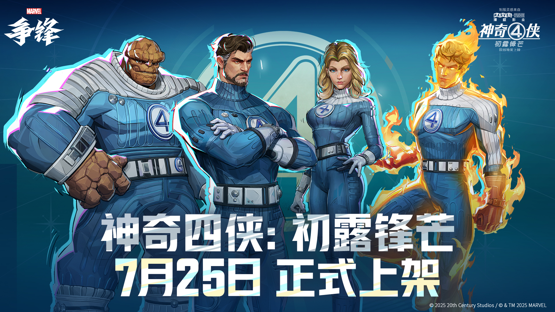 漫威影业全新力作《神奇4侠:初露锋芒》将于7月25日全球上映,《漫威争锋》特别推出同名联动主题皮肤。这套皮肤精准还原了电影中神奇四侠标志性的复古未来风造型,宛若将银幕形象完美复刻至游戏世界。值得一提的是,该系列皮肤不仅包含全新设计的角色表情动作,还将附赠一款伽娜塔主题限定喷漆。「神奇四侠:初露锋芒」系列皮肤将于7月25日10:00正式上架游戏商城,快到游戏里把这套主题皮肤也一同收入囊中吧!