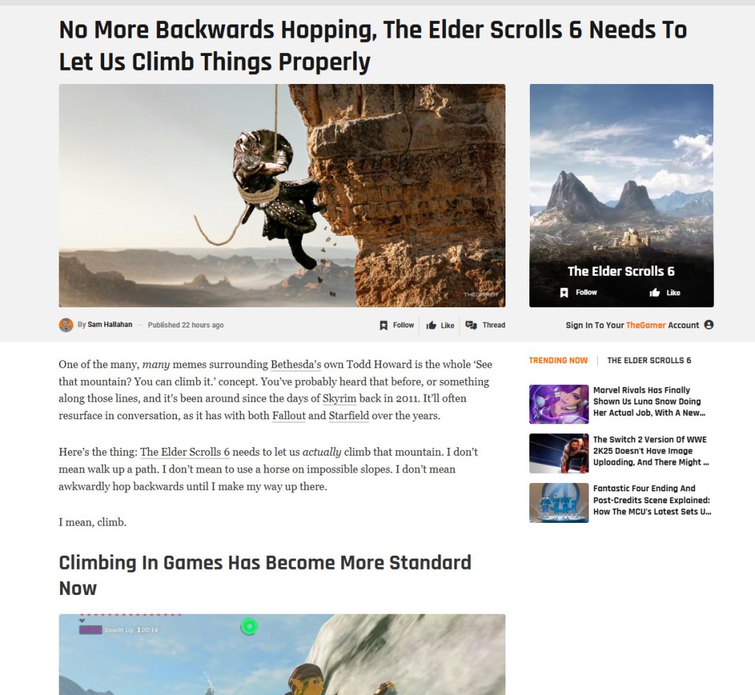 攀爬机制,是我最希望《上古卷轴6》能引入的系统。它极有可能成为整个游戏体验中最具变革意义的元素。