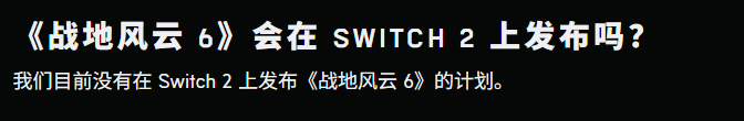 在官方发布的FAQ中,官方确认《战地6》目前没有登陆Switch 2的计划,也没有专门为Steam Deck 提供的支持。