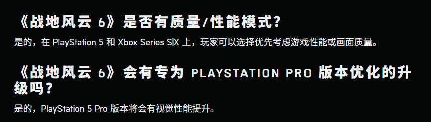 除此之外,官方表示,在PS5 和 Xbox Series S|X 上,玩家可以选择优先考虑游戏性能或画面质量,并且PS5 Pro 版本将会有视觉性能提升。