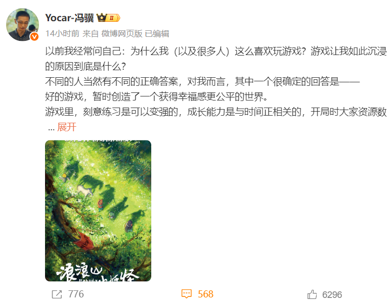 这件事发生在冯骥点评同样是致敬西游题材的《浪浪山小妖怪》上面,他感叹游戏让玩家沉浸的原因是暂时创造了一个获得幸福感更公平的世界,而现实生活却是随机且复杂的。只不过,路没有尽头,继续走下去就很帅气,不要丧,不要慌,不要停。