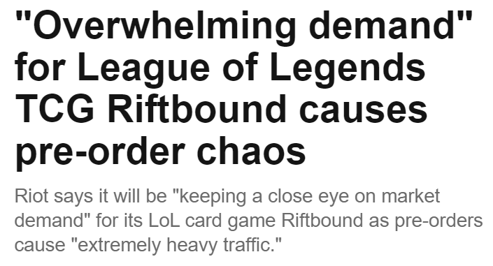 一些海外媒体也报道分析称,这个预购灾难实属是意外,拳头这一次大概率只放出来少量预购卡包,重头戏还是放在10月31日的全球上线。
