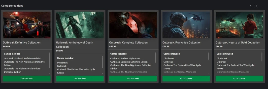 Dead Drop工作室的《爆发(Outbreak)》系列堪称“套娃鼻祖”,仅最近两周就先后推出定价90美元的《爆发:系列收藏版》和75英镑的《爆发:黄金之心收藏版》,两者游戏阵容高度重合。目前该系列在售捆绑包超过60个,普通玩家根本无从选择。