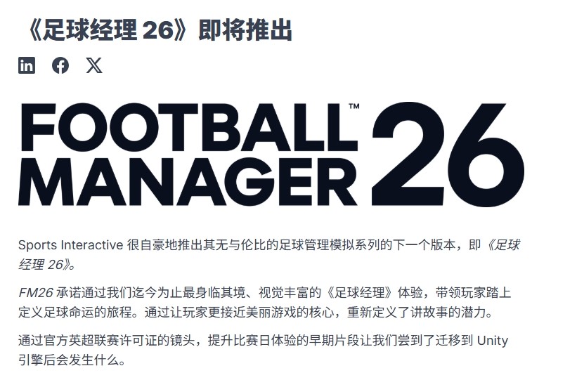 此次宣布的背景是在Sports Interactive和世嘉于今年2月确认《足球经理25》已被取消。该游戏在经历了多次延迟后,最终决定取消,原因是开发团队希望专注于提供一款完整的游戏,并在更换引擎的过程中应对开发挑战。