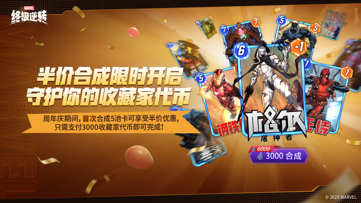 周年庆期间,首次合成卡牌享半价优惠!原价6000收藏家代币?现在仅需3000!?守护你的收藏夹代币,心仪神卡触手可及!