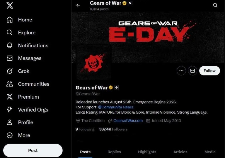 在最近更新的《战争机器》官方Twitter/X账号简介中,确认了《战争机器:事变日》的发布窗口为2026年。