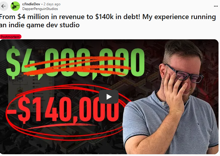 ·现在真正问题来了,游戏历经4年期间的开发,因为工作室不断扩充员工,仅员工工资就超过100万欧元,剩余的钱扣除开发软硬件成本、服务器成本、交税等等杂项费用后,实际Alex根本没到手什么钱。
