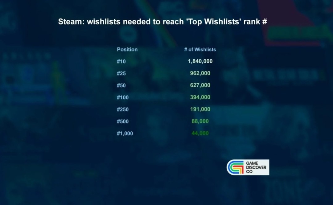 该机构还估算了进入各层级排名所需的愿望单数:跻身前十需约184万,前百名需39.4万,前千名需4.4万。目前Steam预售游戏超过3.3万款,可见即便千名也已属前列。该数据仅为参考值。