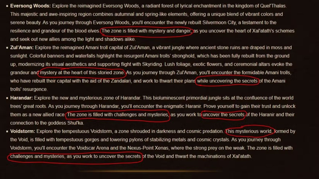 近日,暴雪娱乐因《魔兽世界》新资料片“午夜之境”的区域描述过度使用“神秘”“秘密”等词汇,在社交媒体引发玩家对AI生成内容的质疑。