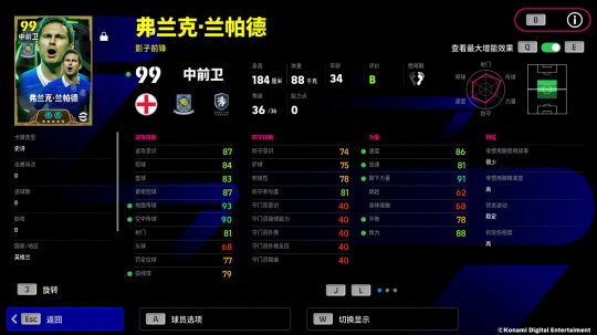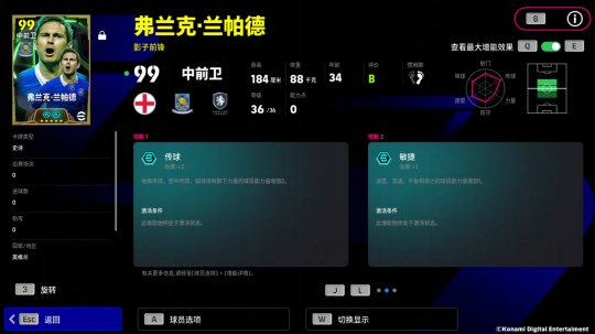 兰帕德增能属性为【传球 +2】,传球能力的增强让他成为球队进攻的枢纽!
