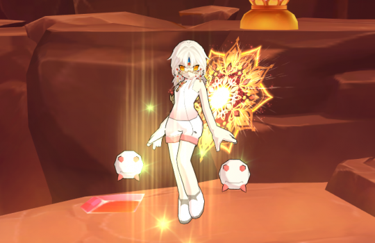 第二关卡BOSS“元素精灵王梦歌姆纳”,在此阶段游戏界面上方会显示点数搜集UI,BOSS会对玩家随机提出一些要求,在一定时间内满足她的要求即可获得相应点数,点数集满可无视BOSS血量直接通关。