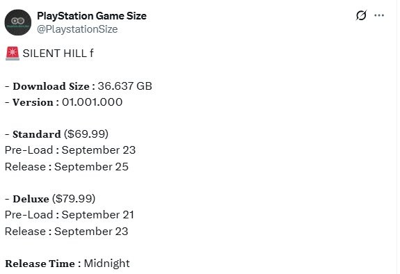 《寂静岭f》标准版与豪华版的游戏文件大小及预载日期现已公布,玩家可据此提前清理硬盘空间并安排下载时间。