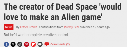 ·虽然属于不同领域,但不可否认的是《死亡空间》与《异形》系列的确有很多相似之处,同样的封闭太空环境、同样的可怕外星生物,同样的阴郁昏暗气氛等等,相信凭借《死亡空间》的口碑,Glenn Schofield主导打造《异形》游戏最合适不过。