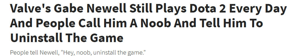 ·G胖本人也非常爱玩《Dota 2》,每天 都会打上几局,尽管贵为本作开发者领袖,但也经常会被其他玩家喷,而且每周至少一次会被喷noob(彩笔),赶紧卸载游戏之类的。