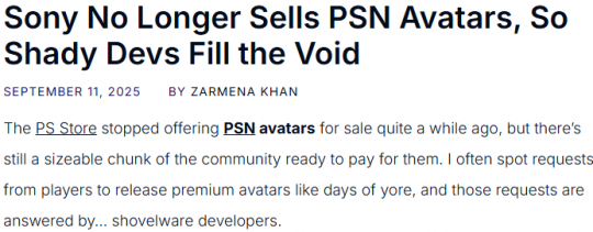 玩家在PlayStation Network的个人资料中,想要更多的个性头像就需要去购买虚拟头像,但是商城规则限制不能单独购买,于是卖家往往会捆绑不少劣质游戏一起打包,越来越让玩家们不满。