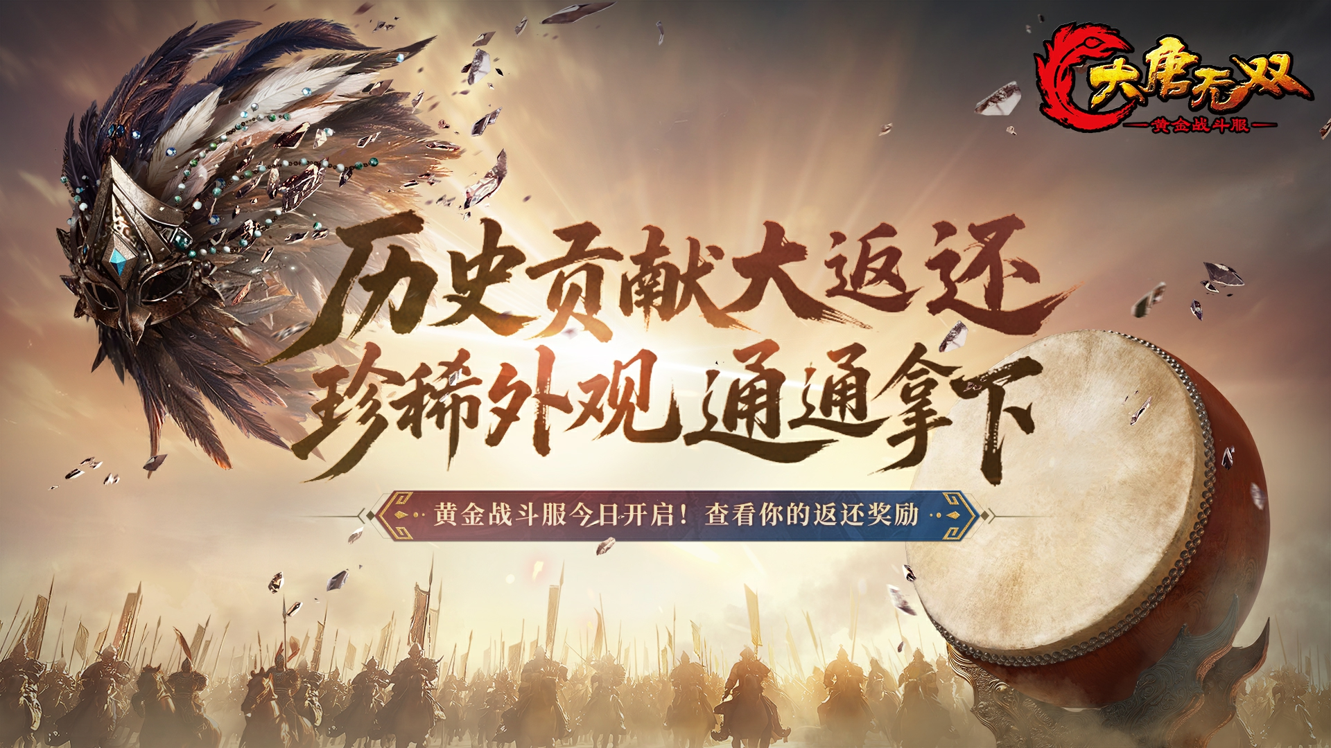《大唐无双》“黄金战斗服”今日(9月12日)下午14:30 隆重开服,一个既承载老玩家青春记忆、又充满全新战斗惊喜的热血世界正式回归——“黄金战斗服”以2013年经典版本为骨,以全面革新的五大核心特色为魂,旨在打造一个无冗余、无压力、重体验、真热血的竞技江湖。欢迎所有热爱PK、热衷社交的少侠们一起共创青春热血乐园!