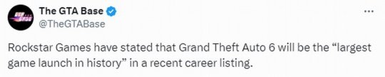 尽管许多业内人士和分析师发表了《GTA6》将对游戏行业产生多大影响的文章,但实际上,R星对该作的看法如何,外界知之甚少。R星肯定知道《GTA6》是一款重量级作品,但它一如既往地保持低调。嗯,除了最近粉丝发现的招聘启事。