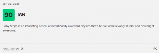 由《掘地求升》制作组开发,Devolver Digital发行的恶搞游戏《一步一脚印》于今日正式发售。本作的媒体评价也已解禁,截止目前M站均分77分,IGN则打出了9分的高分。