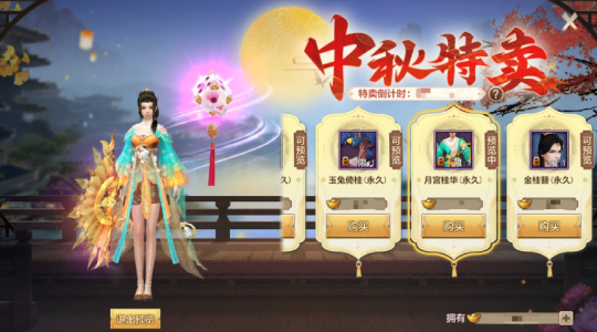 三款经典中秋坐骑将限时开放选购,秋水月轮(永久)、皎月思卿(永久)和玉兔倚桂(永久),助力各位少侠潇洒出行,成为这个中秋节最引人注目的那个崽。