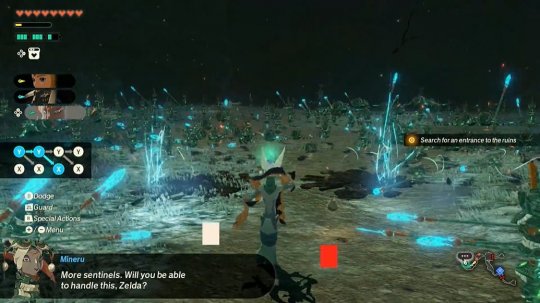 本作为《塞尔达传说》正统续作《塞尔达传说:王国之泪》的外传,描绘了《王国之泪》故事发生之前的世界——太古的封印战争。与原作紧密关联,揭晓了那段不为人知的故事。本次实机展示了流畅的战斗与公主塞尔达花样百出的战斗风格,本次战斗系统依旧沿用《塞尔达无双:灾厄启示录》,不过本作似乎加快了对精英怪的破盾速度。