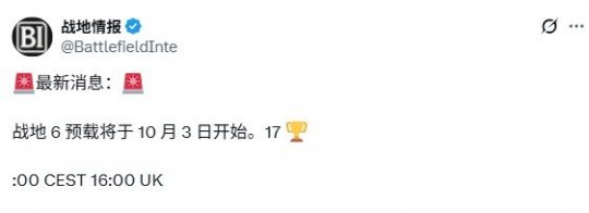 EA与DICE旗下经典第一人称射击系列新作《战地6》的预载日期及下载容量已正式公布。