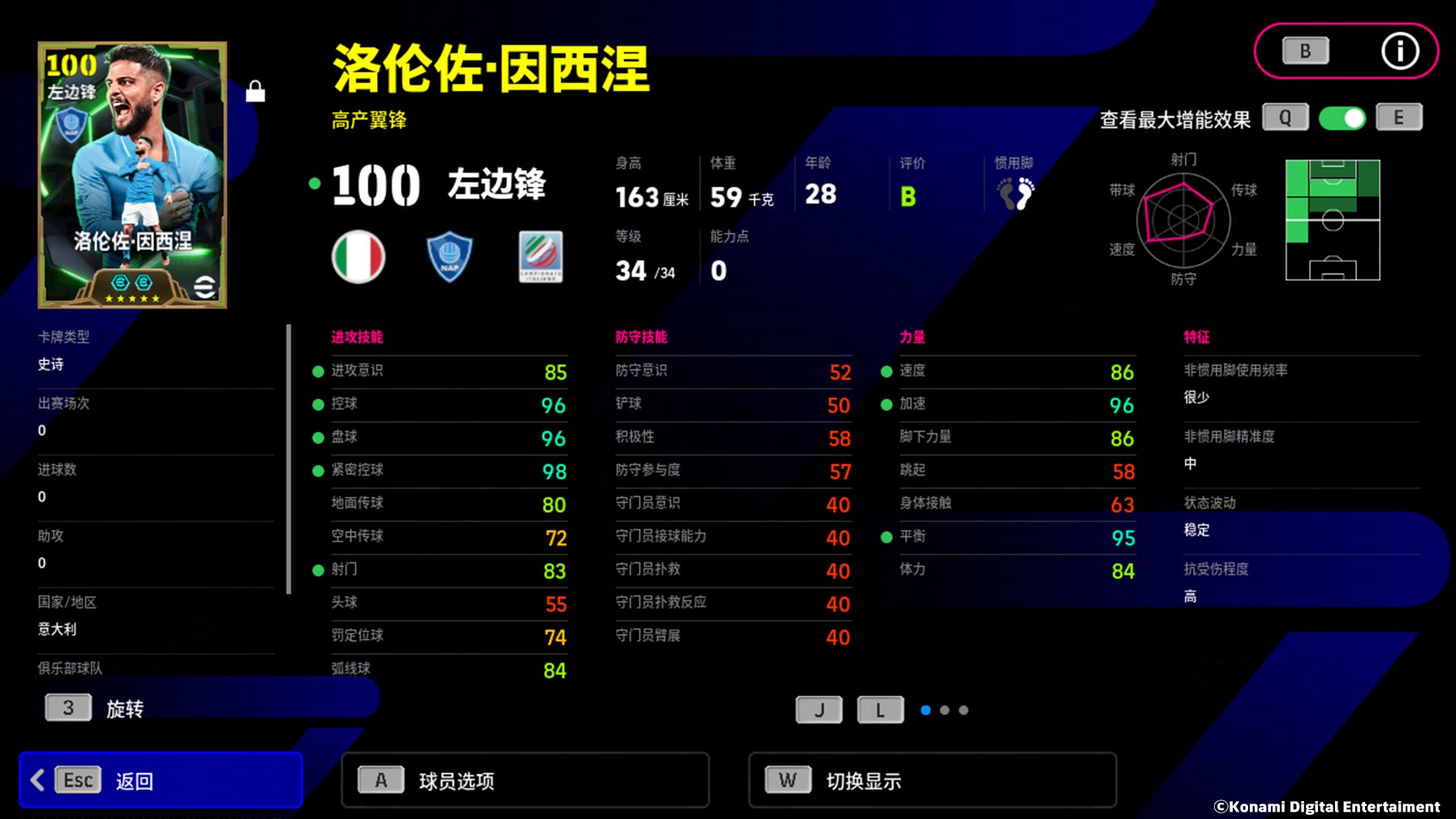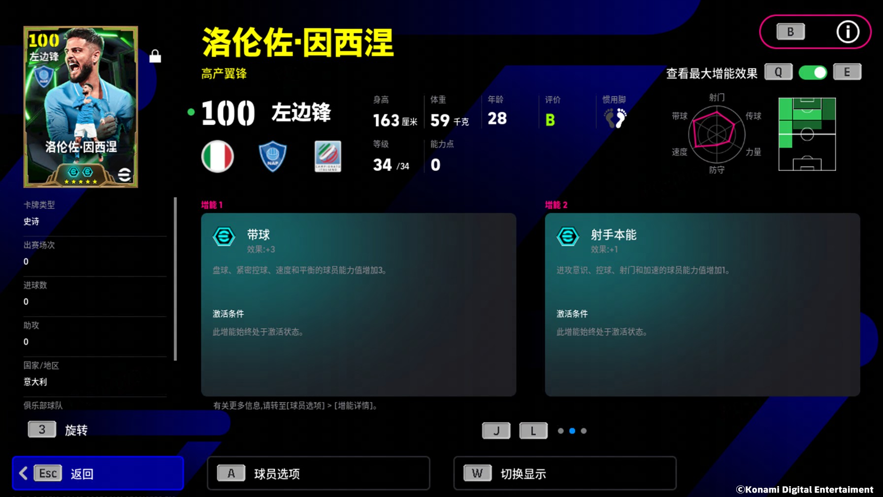 因西涅的增能属性为【带球 +3】,顶级的盘控数值让他制霸球队左路!因西涅还自带特殊技能【弧线落叶射门】,搭配上不俗的射门数值,他也能在禁区外,搓出漂亮的弧线直挂球门死角!
