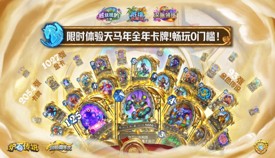 1. 天马年全卡限时免费畅玩!从9月30日更新后开始,所有玩家登录游戏就能免费畅玩“天马年”的全部2054张卡牌,包含1027张金卡!无论你是刚入坑的新手,还是许久未归的老玩家,都能轻松组出强力的冲分卡组!
