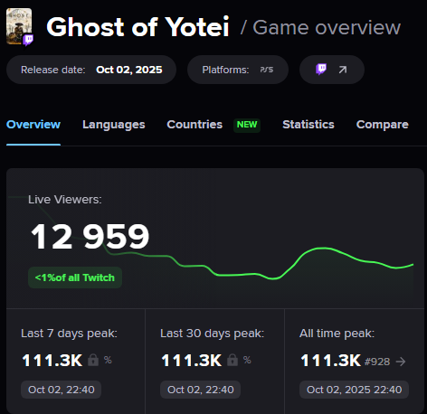 其实,不光从销售量看出《羊蹄山之魂》后劲不足,连Twitch上观看该游戏的人数也出现断崖式暴跌,在短短5天内,从峰值11.1万人跌至不到1.3万,而根据谷歌的数据显示,哪怕是在周末,该作的热度依旧持续下滑,这对于一款刚发售不久的游戏来讲,无疑是致命的。