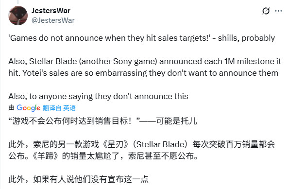 值得一提的是,前作《对马岛之魂》在发售三天就向外公布240万套销售量,与如今的《羊蹄山之魂》形成了鲜明的对比。有网友从第三方统计推测,《羊蹄山之魂》实际的销量十分糟糕。