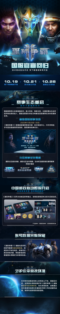 2025年10月18日,《炉石传说》黄金赛西安站现场传来重磅消息 —— 网易雷火暴雪项目负责人魏恺正式宣布,《星际争霸 Ⅱ》国服将于10月28日全面回归,技术测试将于10月21日抢先开启。这一消息终结了玩家长达近一千天的等待,标志着这款即时战略电竞巅峰之作即将重返中国赛场。《星际争霸Ⅱ》世界冠军李培楠(Oliveira)、星际老男孩解说组合孙一峰(F91)与黄旭东(Xiaose)在现场共同见证了国服回归官宣的历史性时刻。