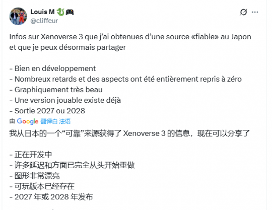 这一消息源自用户@cliffeur的爆料,他声称从日本可靠消息源获知,《龙珠:超宇宙3》在经历多次延期后,目前已进入深入开发阶段。消息指出,游戏部分内容已被彻底重制,并将采用卡通渲染风格,画面表现力极佳。目前已有可试玩版本存在,但最终发售时间可能要到2027年末或2028年。