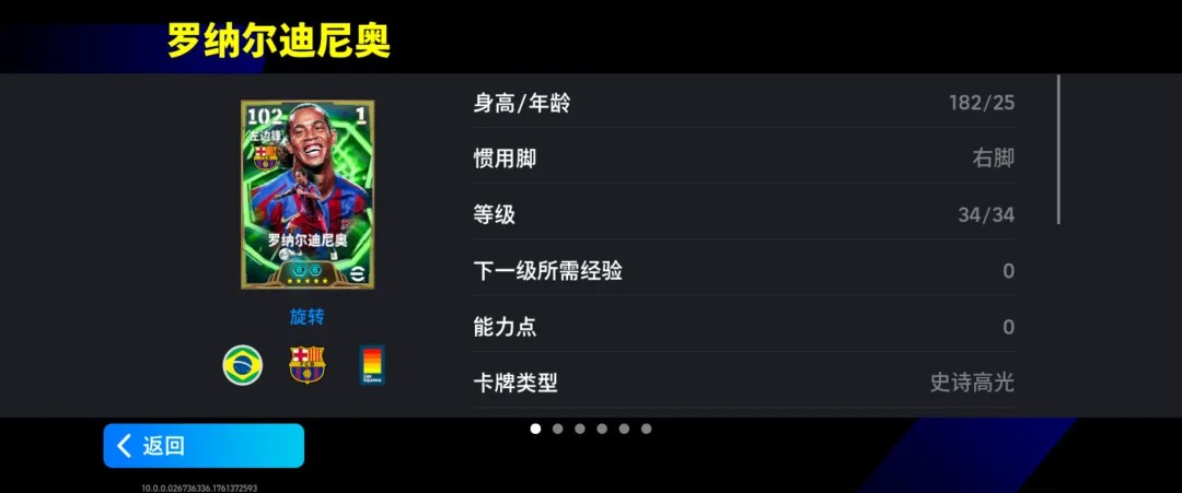 罗纳尔迪尼奥增能属性为【带球 +3】