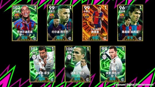 双增能史诗高光罗纳尔迪尼奥、菲戈、阿扎尔将通过【国家德比 高光 特级经纪人(兑换保底)】首次登场!除此之外,你还将有机会获得双增能史诗高光欧文、阿尔巴、加西亚,双增能决胜高光佩德里。想要补强球队的玩家们,千万不要错过此次活动!