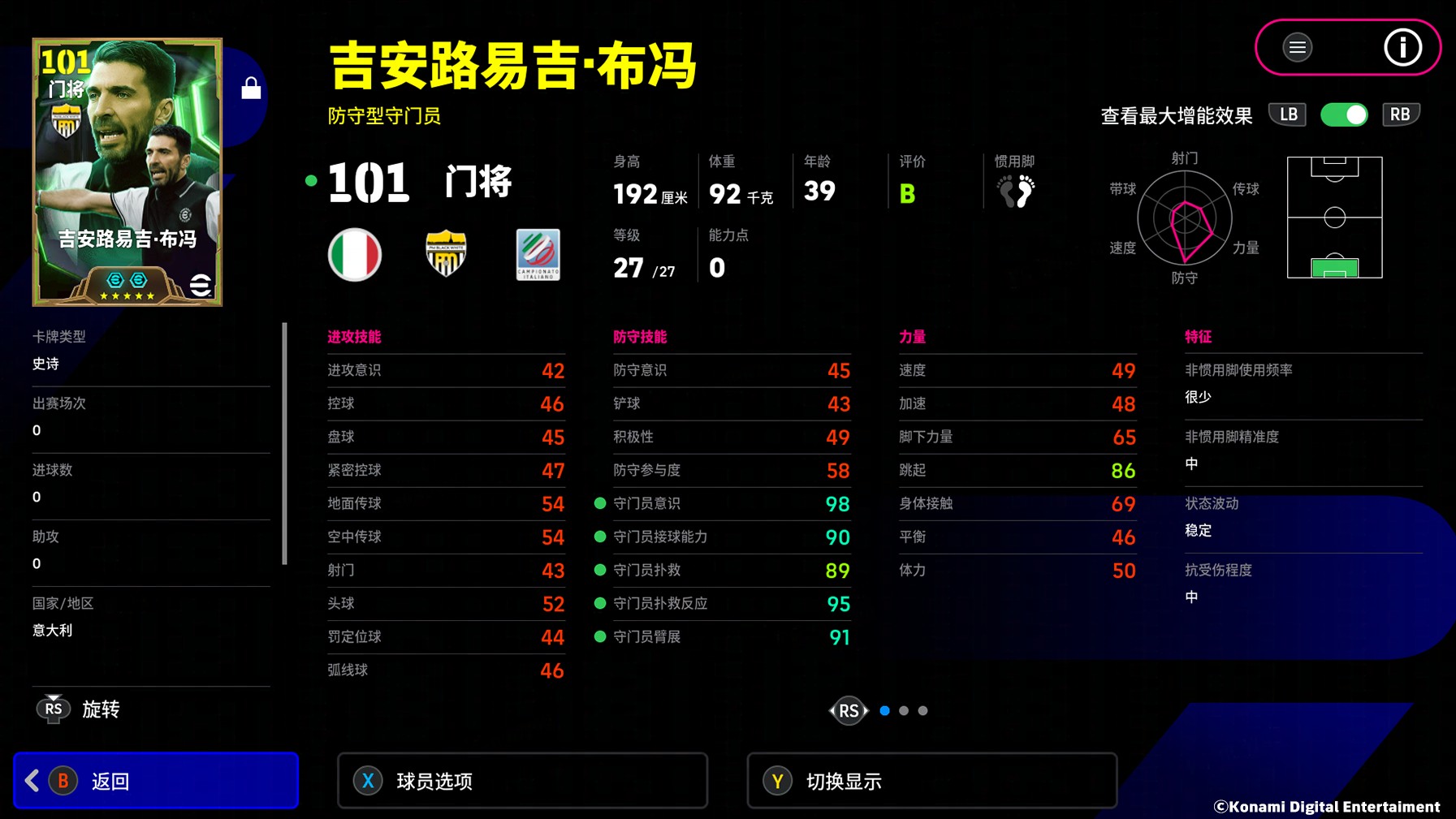 卡纳瓦罗的增能属性为【防守 +3】,让这位金球后卫成为前锋的梦魇!