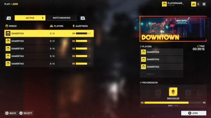 现在,根据用户界面来看,《走私》这款游戏似乎主打四人合作模式。此外,似乎还存在一个基于不同犯罪等级(例如“骗子”、“强盗”、“走私犯”或“大亨”)的进度系统。