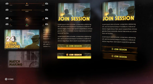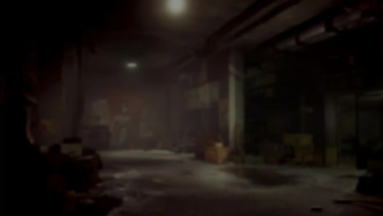 虽然这些图片主要展示的是用户界面设计,但我们也能从中窥见一丝游戏内场景。尽管它只是某个菜单的模糊背景,但从中可以辨认出,这似乎是一个光线昏暗的安全屋,里面堆放着板条箱和盒子。考虑到它出现在招募菜单的后面,这强烈暗示着该地点可能曾是玩家的主要枢纽或兴趣点。