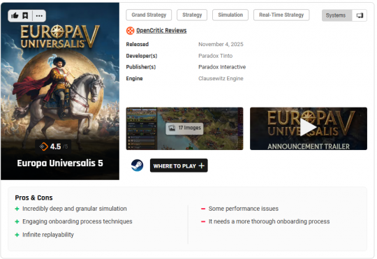 《欧陆风云5》或许在理论层面堪称有史以来最令人印象深刻的历史策略游戏——它拥有深厚的模拟系统、极度精细的地图与人口统计,并生动刻画了从中世纪迈向现代世界的五百年历史图景。然而就目前而言,这款游戏确实需要更多打磨,尤其在整体平衡性、参数调校与AI行为方面表现得尤为明显。它尚未给人完全成品之感,如果您决定作为早期使用者勇敢尝试,这或许是您需要预期的现状。话虽如此,我认为本作的基础框架非常扎实。Paradox将重心放在正确方向上以最大化《欧陆风云5》的长期潜力——或许这是以首发流畅度为代价——只要开发团队能有效驾驭这个宏大的体系。游戏机制堪称卓越,它已然成为一部蕴含海洋般深邃内容的战争模拟与国家经营杰作。假以时日与精心培育,它必将在同类作品中确立霸权地位。但就此刻而言,这个梦想仍在地平线之外。