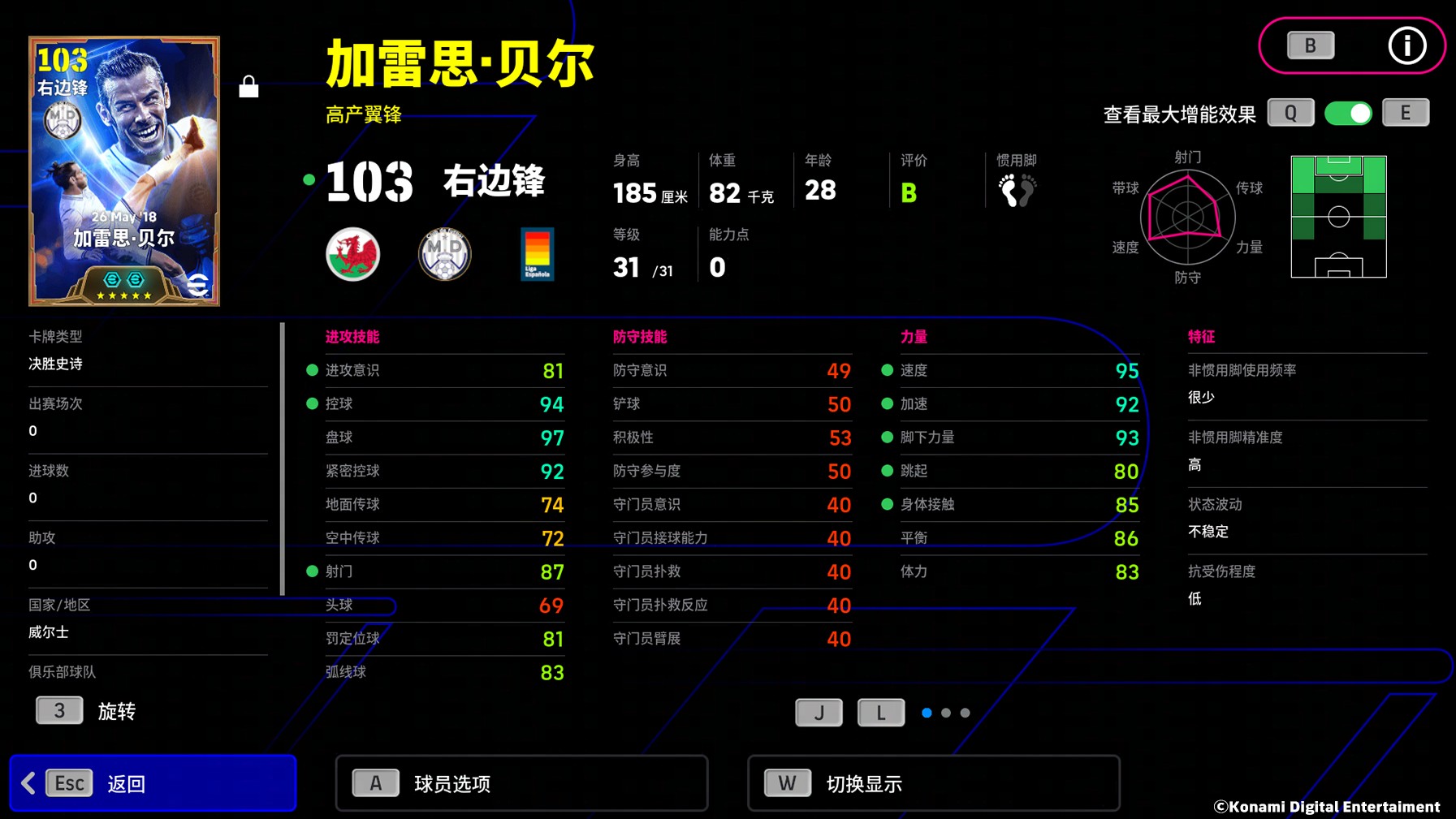 *增能后球员总评可达103分,上阵最大总评可达107分