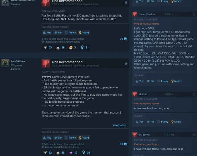 此外,完整付费游戏内含付费战役通行证的设定进一步激化矛盾,加之多国玩家因本地化支持不足发起集体差评,共同导致游戏口碑持续恶化。专业人士指出,除非开发商能尽快推出实质性改进措施,否则当前负面评价趋势将难以逆转。