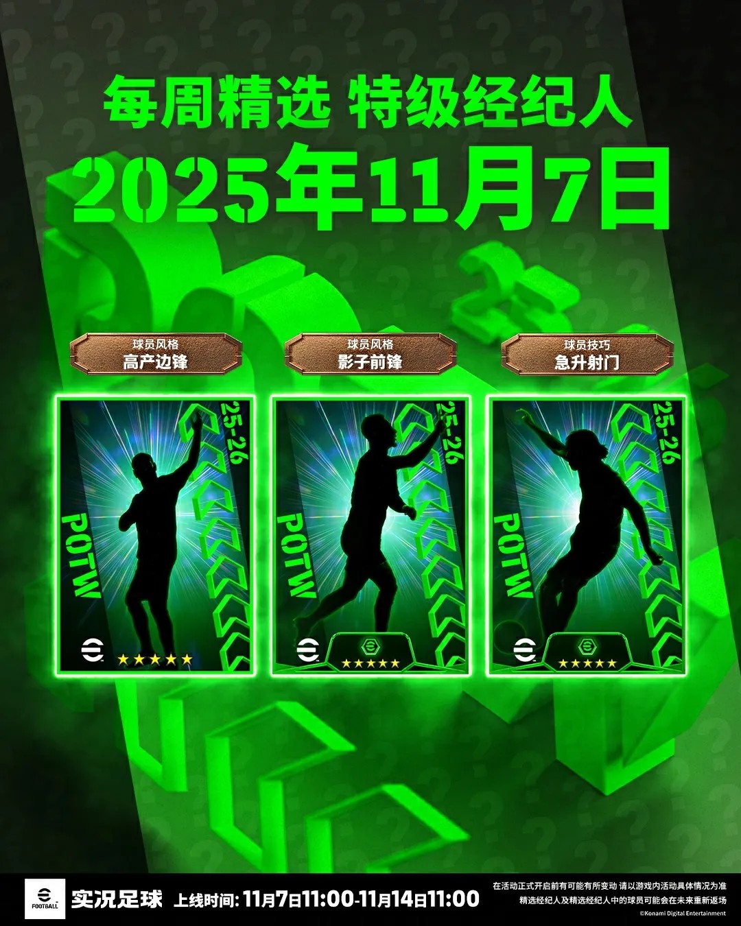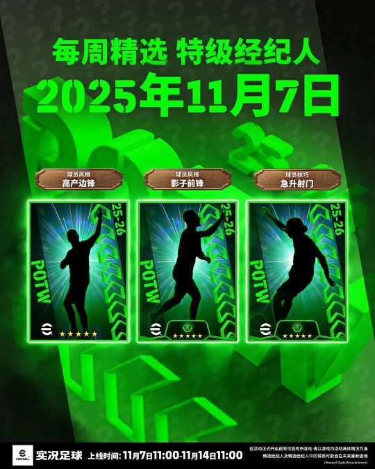 【每周精选 特级经纪人(11.07~11.14)】即将上线,你将有机会获得本周在赛场表现优异的精选球员。
