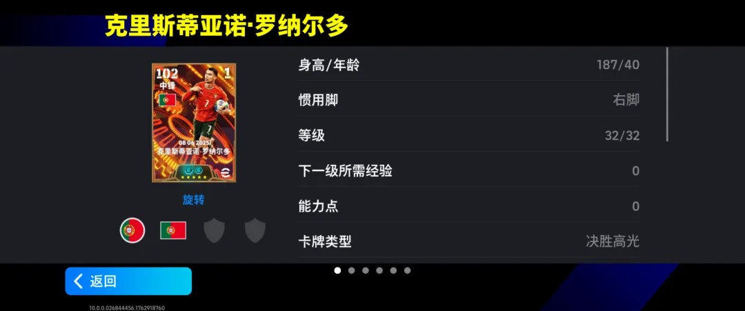 C罗增能属性为【射手本能 +3】
