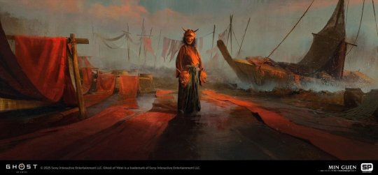 Sucker Punch工作室的概念艺术家Hans Park和Minh Guen近期分享了索尼PS5独占动作游戏《羊蹄山之魂》的的早期概念图。此外,Park还详细阐述了他的概念设计(第一张图)及其背后蕴含的理念: