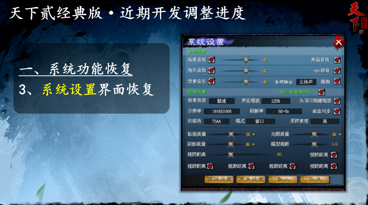 ¡¡¡¡³ý´ËÖ®Í⣬ÎÒÃÇ·¢ÏÖ¡¶ÌìÏ·¡·¾µä°æ¡·ÊÇÍêÈ«»ùÓÚ2008-2010ÄêµÄÌìÏ·¡°æ±¾½øÐÐÉè¼ÆµÄ¡£²»½ö»Ö¸´ÁË֮ǰµÄ×°±¸¼ø¶¨ÏµÍ³£¬»¹¶ÔϵͳÉèÖýçÃæ¡¢¾É°æµØÍ¼¡¢ÊØÎÀÃÅÅɵÈÔªËØ½øÐÐÁËÉî¶È¸´Ô¡£