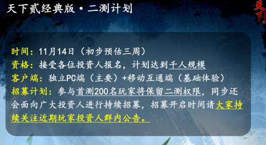 ¡¡¡¡³ý´ËÖ®Í⣬¸ù¾Ý¡¶ÌìÏ·¡·¾µä°æ¡·¶þ²â¼Æ»®ÄÚÈÝÀ´¿´£¬¿ÉÒÔ»ù±¾È·¶¨¸ÃÓÎÏ·»á²ÉÓöÀÁ¢PC¶ËºÍÒÆ¶¯»¥Í¨¶ËÉÏÏß¡£ÕâÑùµÄË«¶Ë»¥Í¨Éè¼Æ£¬ÎÞÒÉΪ²»Í¬³¡¾°ÏµÄÍæ¼ÒÌṩÁ˸ü¶à±ãÀû¡£¶øÇÒ¸ù¾Ý²ß»®ÍŶӱ¬ÁÏ£¬¶þ²â½×¶Î»¹»áÍÆ½ø“Íæ¼ÒͶ×ÊÈË´ú±í”ÖÆ¶È£¬Íæ¼Ò´ú±íÃǽ«×é³É“Ͷ×ÊÈË´ú±íÒé»á”£¬Ó뿪·¢×é½øÐг¤ÆÚÉî¶ÈµÄ½»Á÷¡£Óɴ˿ɼû£¬¡¶ÌìÏ·¡·¾µä°æ¡·²»½öÔÚ´«³Ð¾µä£¬»¹ÔÚ²»¶ÏÍ»ÆÆ×ÔÎÒ£¬Å¬Á¦ÎªÍæ¼Ò´òÔìÒ»¸öÖµµÃ³¤¾Ãפ×ãµÄÓÎÏ·ÊÀ½ç¡£