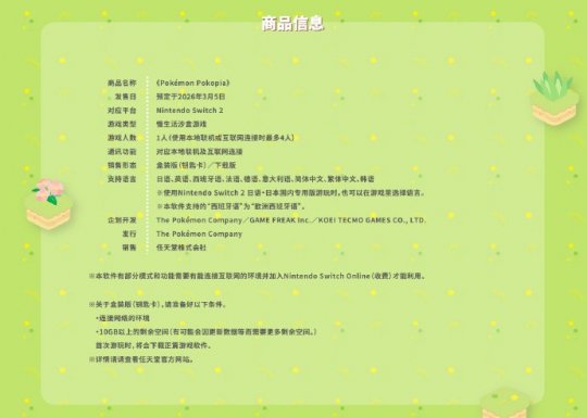 近日,任天堂正式公布,由光荣特库摩旗下Omega Force工作室开发的全新生活模拟游戏《宝可梦:Pokopia》,将于2026年3月5日登陆Nintendo Switch 2平台。这款作品为任天堂发行的首个采用“游戏钥匙卡”格式的游戏,代表公司在实体与数字发行方式上的新尝试。官方确认,游戏的最新预告片将于11月13日发布。