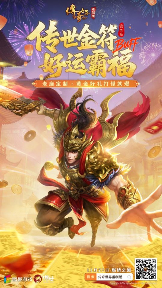 《传奇世界重制版》携手百年老字号「老庙黄金」重磅定制传世金符!现在参与官方专题页活动即可抽取,战法道角色专属定制,好运等你领!11月27日公测开启后,野外打怪即有机会爆出「传世好运金符」(999足金)!