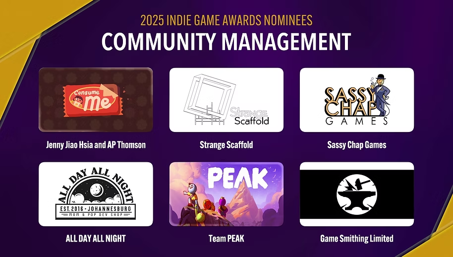 本届典礼全新设立“独立先锋奖”,将评选五位代表行业未来发展方向、推动独立游戏生态进步的杰出开发者。同时新增由拉美游戏展、女性主导游戏、游戏界黑人声音等策展方设计的区域性与主题性奖项,此外,观众现在还可以提交他们最喜欢的独立游戏,涵盖多种类型,用于新的社区推荐环节。