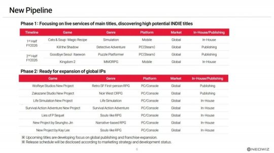 凭借《匹诺曹的谎言》成功跻身全球视野的韩国游戏发行商Neowiz,近日在其2025年第三季度的投资者演示文稿中,披露了令人瞩目的未来游戏阵容。公司目前正同步开发七款PC与主机游戏,其中包括《匹诺曹的谎言》续作及多款由资深开发者领衔的未公开角色扮演游戏。