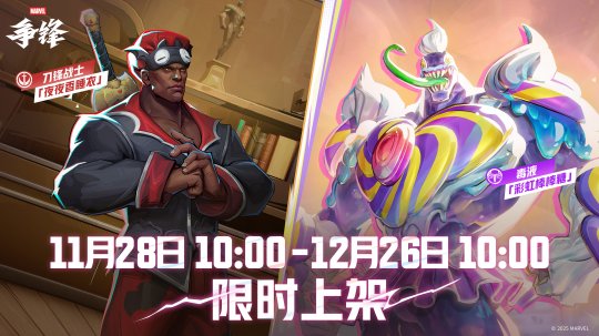 11月28日,《漫威争锋》将上架两款全新制服——毒液「彩虹棒棒糖」与刀锋战士「夜夜安眠睡衣」。毒液「彩虹棒棒糖」将其彻底化为"糖液"形态,全身点缀糖果与冰淇淋元素,视觉效果甜美可人。而刀锋战士「夜夜安眠睡衣」则巧妙融入游戏梗,调侃其"沉睡两个赛季"的背景,看来换上这身睡衣真的可以“夜夜香”呢。两款制服设计别出心裁,相当有趣,将会在11月28日10:00至12月26日10:00期间限时上架,喜爱的玩家请抓紧购买!
