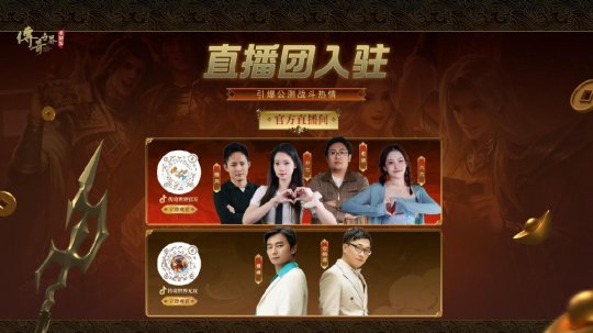 直播盛典期间,晚风、小七、老胡等"传世主播团"将在"传奇世界官方"、"传奇世界无双"两大抖音官方直播间轮番坐镇,传奇四毛、传奇亮哥、芒果冰等头部主播同步开播,形成矩阵式传播,共同见证传世新篇章。